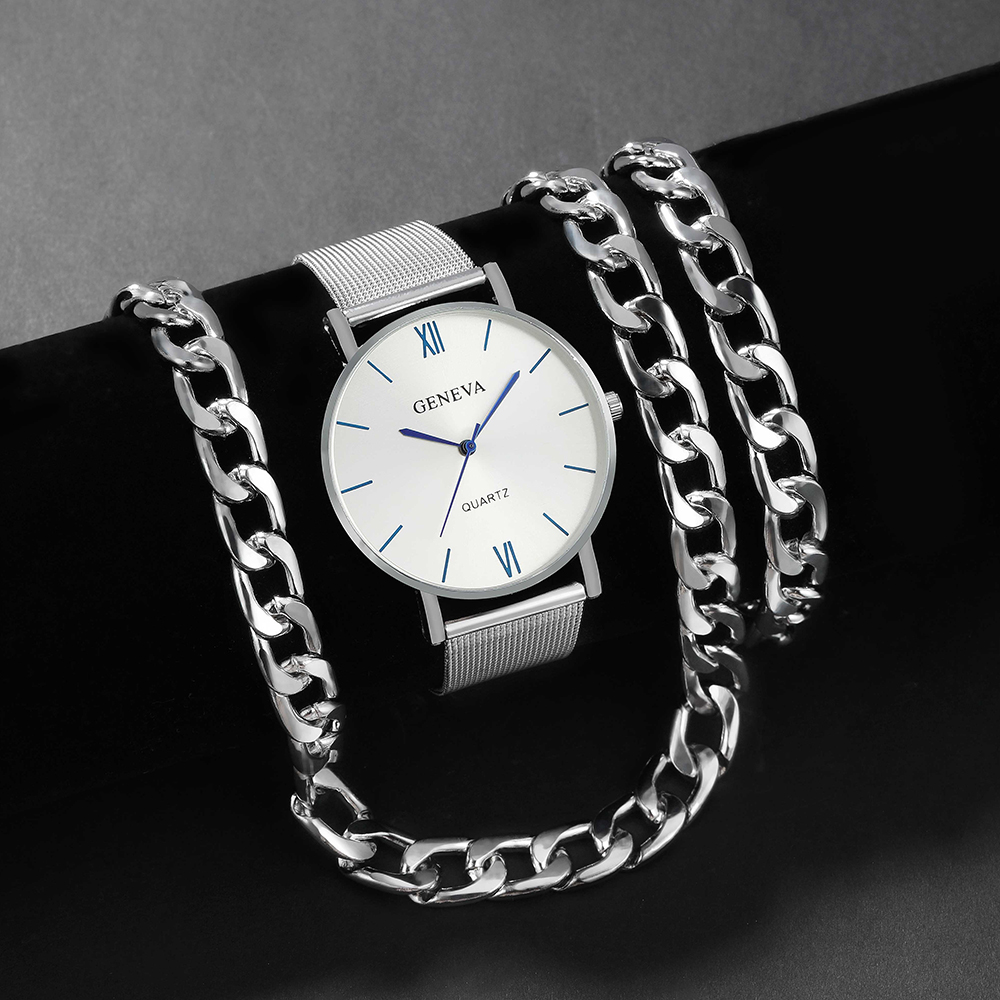 Then, one evening while casually browsing online, I happened upon Sumsfashion's homepage. I wasn't actively shopping for anything in particular, just passing the time. But one set immediately stood out: the 3Pcs Luxury Men's Business Mesh Band Watch Quartz Wristwatch & Necklace Bracelet Set. It had the sleek, sophisticated aesthetic I was after, and the price was surprisingly approachable. Naturally, I was skeptical—I've had my share of disappointing online jewelry purchases. However, the glowing reviews and detailed product information gave me the confidence to give it a try.