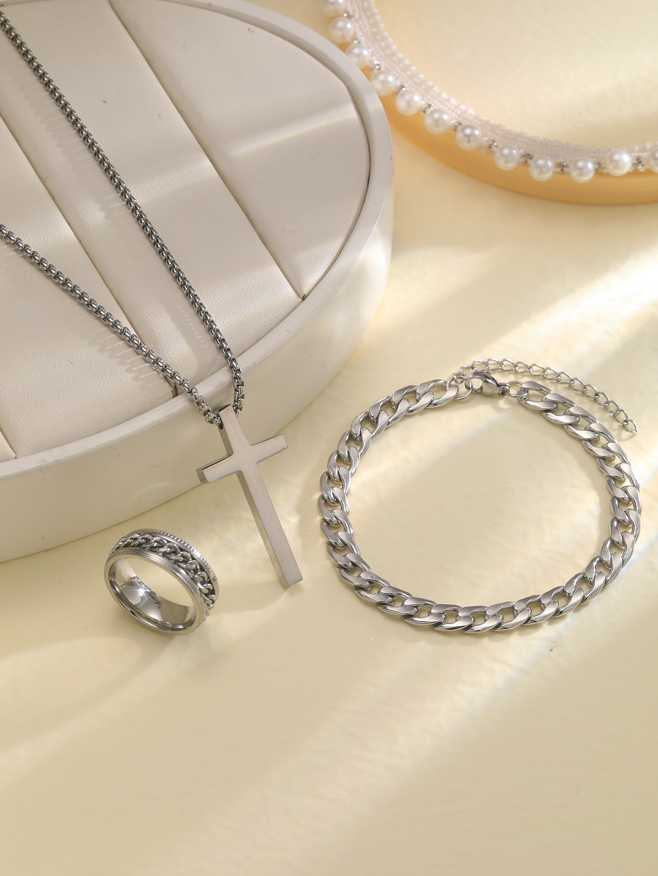 After that disaster, I was cautious and felt burned. But I really wanted a simple, durable jewelry set—something with a punk vibe, like a cross necklace, bracelet, and ring. That's when I saw the 3Pcs Stainless Steel Cross Jewelry Set, which claimed to be high-quality stainless steel.